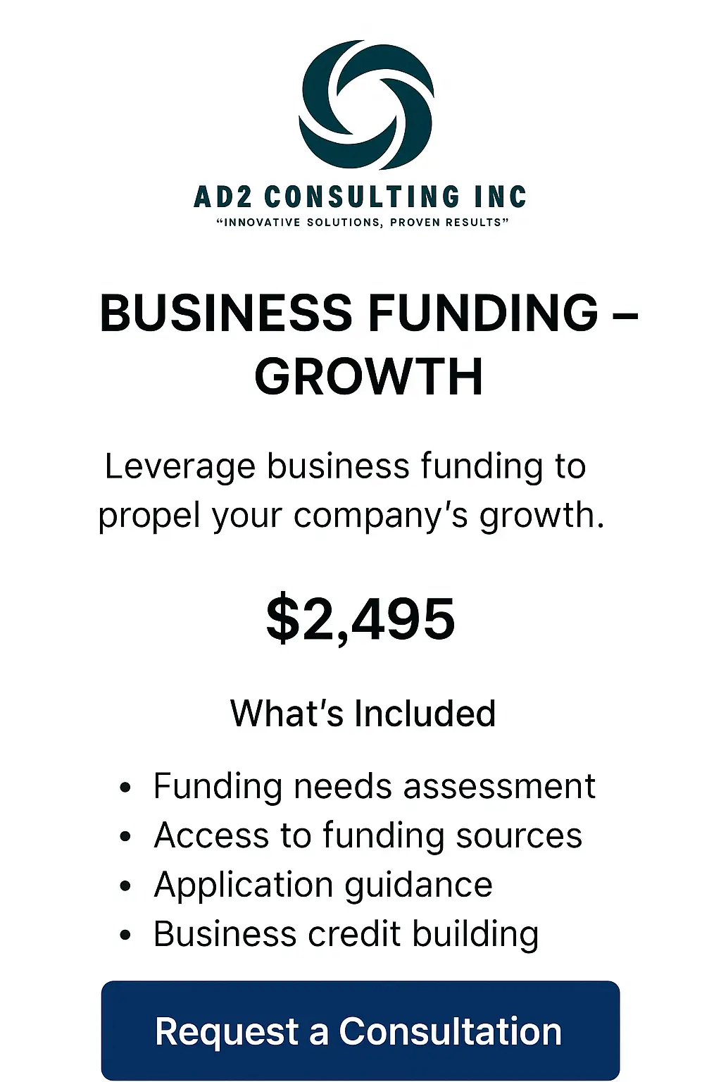 Growth Funding Accelerator is built for revenue-generating businesses ready to expand. Whether you need to hire, purchase equipment, or expand marketing, we guide you through the funding process with a strategic capital stack tailored to your business. This service includes lender introductions, credit review, and application preparation to ensure your funding request stands out.